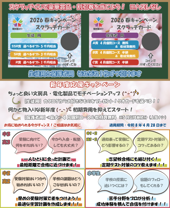 個別塾カラーでは完全オーダーメイドカリキュラムで生徒さんの”COLOR”を大切にします。